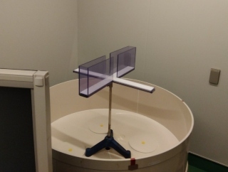 仕様 円形(直径1センチ)のプールの一部に、水深1センチのプラットフォームが設置されている(マウスには見えない)。このプラットフォーム上ならマウスは泳がずに休むことができる。このプール内にマウスを泳がせ、プラットフォームの場所を、周囲の景色を手掛かりに学習する。
