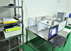 仕様 50㎝四方のフィールド内の自発運動量および赤外線ビームによる立ち上がり量を測定する。専用の照明によりフィールド内の照度を任意に調整可能。一定のアルゴリズムによる解析にて回転運動のカウントが可能。またフィールド内に一定のオブジェクトを置いて動画をエキスポートし、解析することにより、新規物体認識テストも可能。