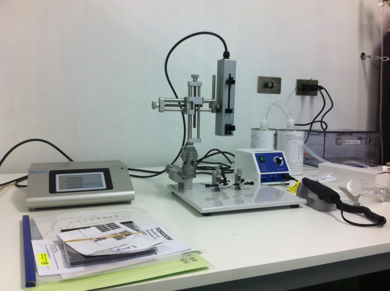 マウス脳内局所に薬液等を微量注入するための装置です。